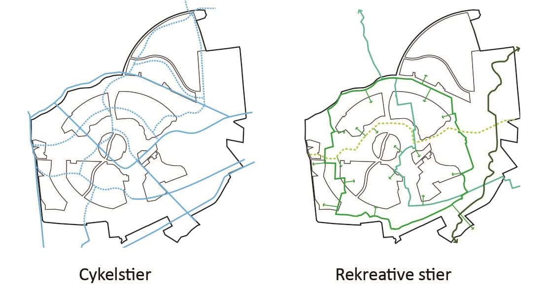 - Veje og stier skal indtænkes i den sammenhængende byudvikling