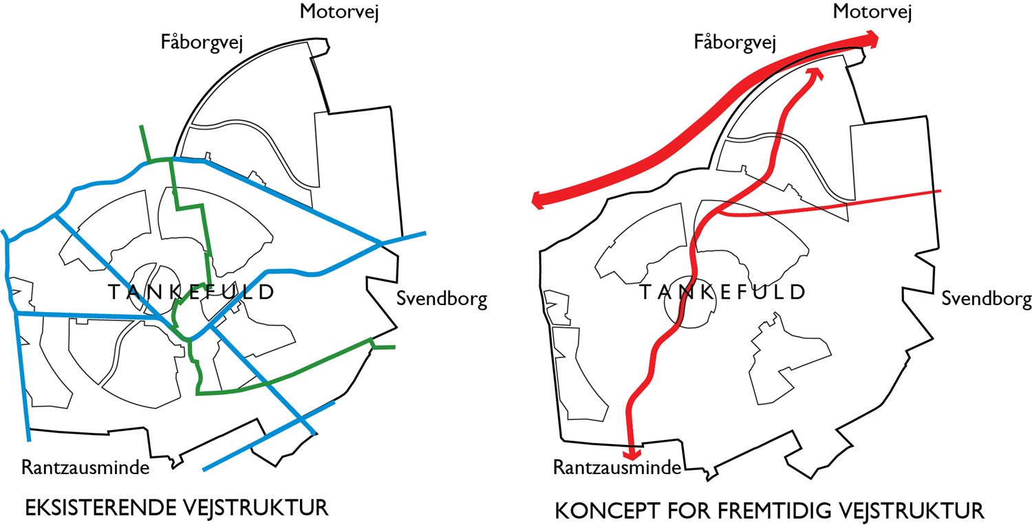 Tankefuldprojektet omfatter ca. 6,5 km nye overordnede vejforbindelser bestående af en nord-syd gående forbindelse mellem Fåborgvej og mod syd til Dyrekredsen i Rantzausminde, samt øst-vestgående forlængelse af Johannes Jørgensens Vej fra Ryttervej med tilslutning til ny nord-sydgående forbindelse.