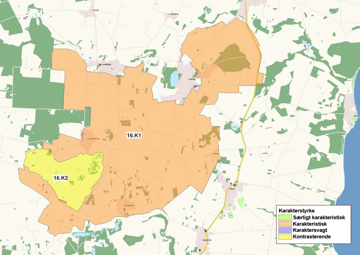 Størstedelen af karakterområder fra Brudager og Gudbjerg til områdets nordøstlige grænse – 16.K1