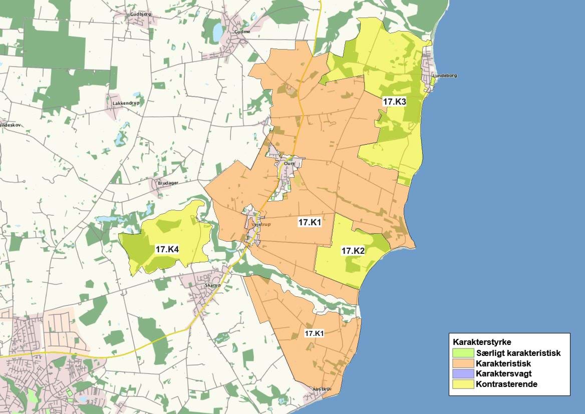 Hele karakterområdet med undtagelse af Tiselholt, skovene ved Lundeborg og Klingstrup – 17.K1