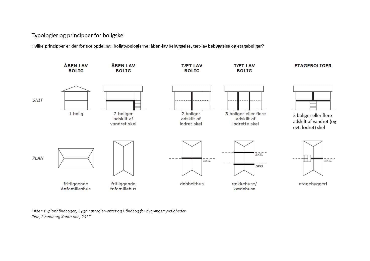 Der er forskellige principper for opdeling af boliger for hhv. åben-lav, tæt-lav bebyggelse og etageboliger. Principperne fremgår af illustrationen herunder.