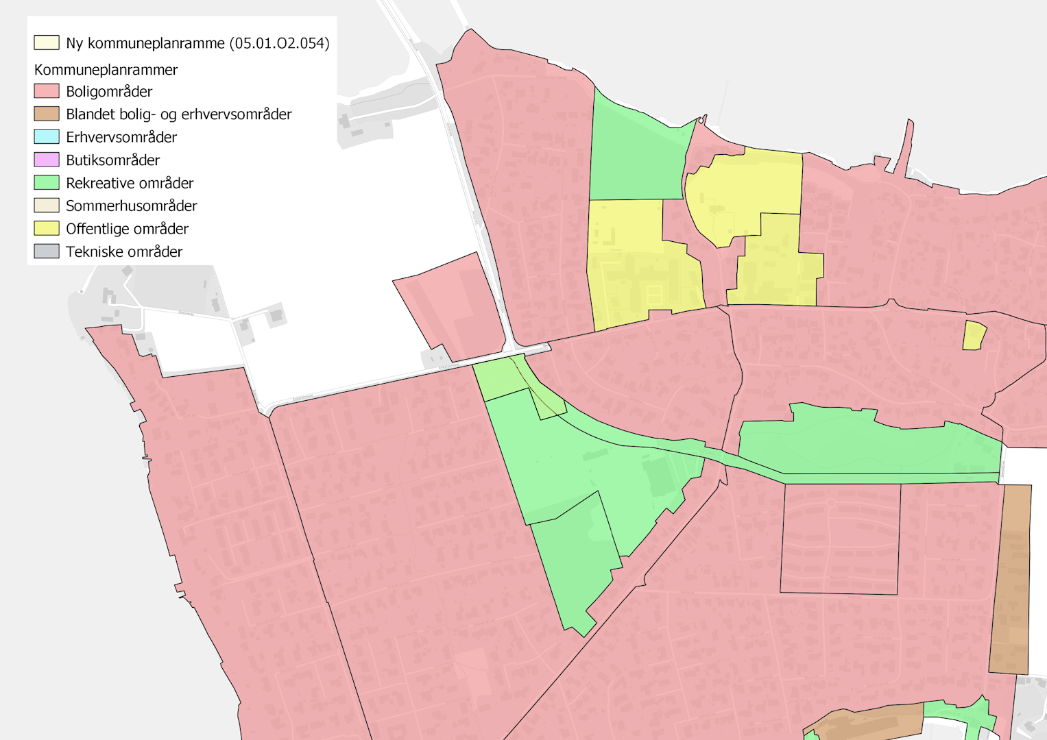 Med kommuneplantillægget oprettes én ny kommuneplanramme for området, der samtidig reducerer en del af de eksisterende kommuneplanrammer.