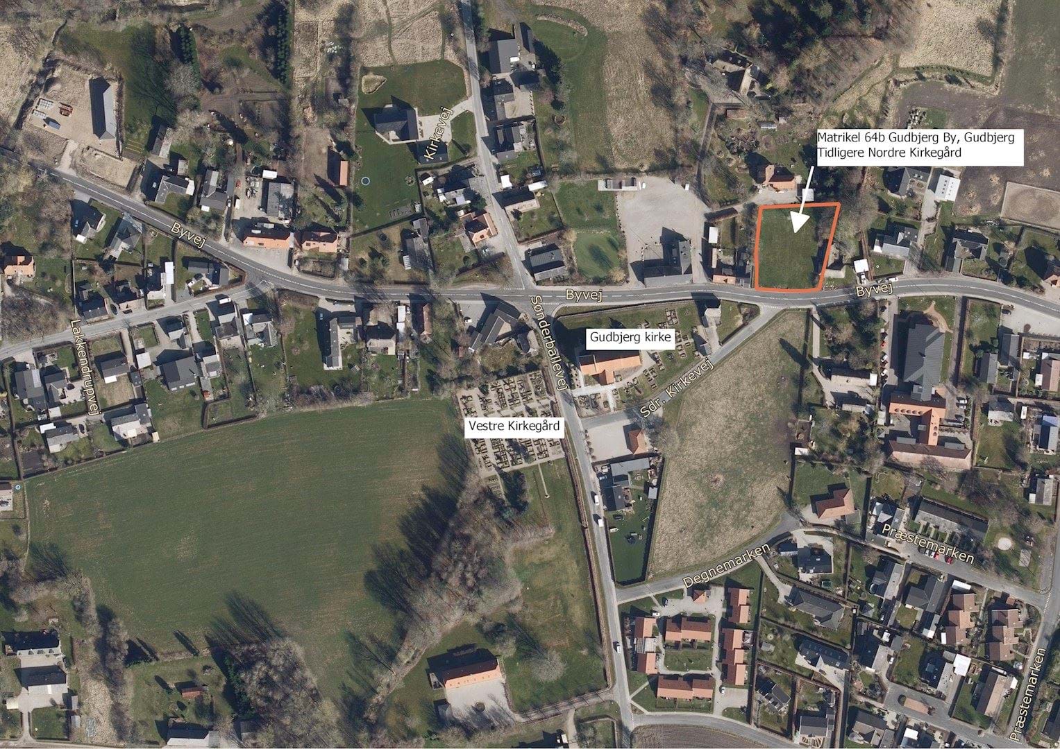 Matrikel 64b Gudbjerg By, Gudbjerg ejes af Gudbjerg Menighedsråd. Området ligger centralt i Gudbjerg nord for Byvej. Gudbjerg Kirke ligger syd for Byvej og der er således en sammenhæng imellem Gudbjerg Kirke og matrikel 64b Gudbjerg By, Gudbjerg, på tværs af Byvej.