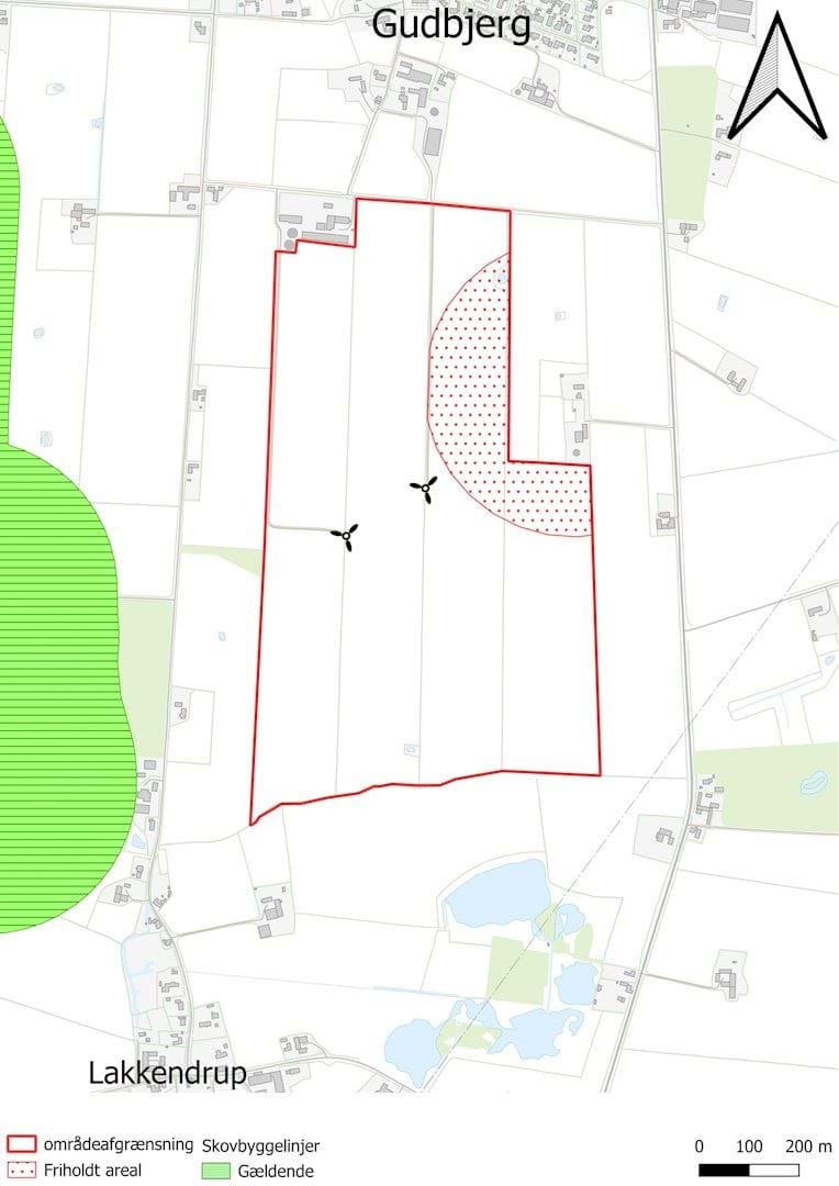 Der er ingen skovbyggelinjer i rammeområdet. Mod vest ligger Gudbjerg Skov, Dyrehaveskoven og Lakkendrup Skov.
